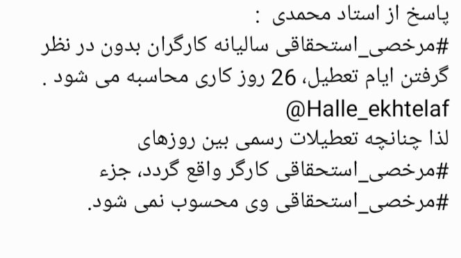 سوال : در شرکتی که مشغول به کار هستم ,اگر فردی , روزهای پنجشنبه و شنبه درخواست مرخصی استحقاقی داشته باشد ,روز جمعه نیز از ذخیره مرخصی وی کسر میگردد, آیا این رویه صحیح است ؟