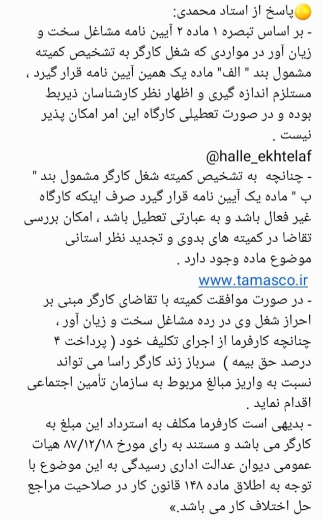 قانون کار و تامین اجتماعی پرداخت حق بیمه مشاغل سخت و زیان آور دسامبر 9, 2023 ارسال توسط آرمین خوشوقتی 20 مارس سوال: من شغلم سخت و زیان آور است ولی دوسال اول کارم در شرکتی کار میکردم که شرکت الان دیگر فعال نیست آیا میتوانم سهم ۴ درصد را خودم پرداخت کنم؟ به این پست امتیاز دهید