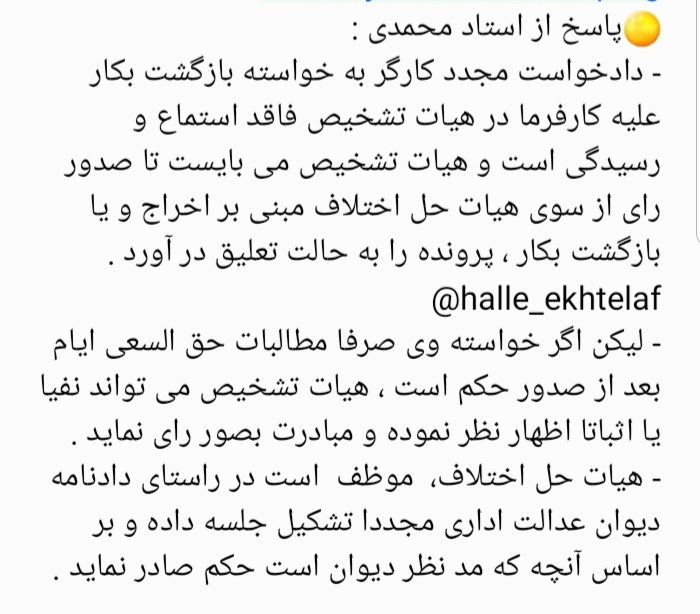 رسیدگی مجدد در مراجع حل اختلاف وزارت کار