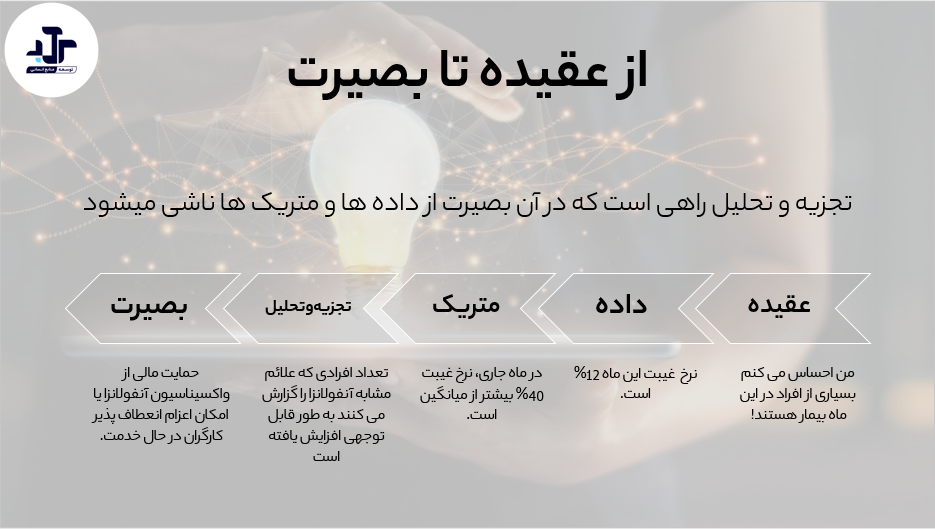 داده ها به واقعی سازی عقیده کمک می کند. وقتی به داده ها نگاه می کنیم، می بینیم که سطح غیبت در این ماه 12 درصد است. با این داده ها هنوز نمی توانیم قضاوت ارزشی داشته باشیم. ما نمی دانیم که 12 درصد زیاد است یا پایین.